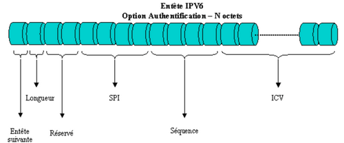 L’entête authentification (aussi appelée AH ou Authentication Header), décrit un mécanisme permettant au destinataire d’un datagramme de valider l’identité de l’émetteur. On rappelle que dans le protocole IPv4, aucun mécanisme similaire n’est proposé. L’utilisation du chiffrement des données renforce alors la sécurité du datagramme, car seul le véritable destinataire peut lire les données.