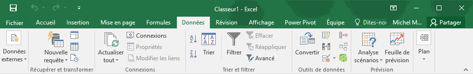 L'onglet Données permet d’utiliser, de trier, de filtrer, de valider, de grouper et de dissocier des données provenant de sources externes.