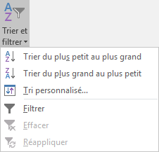 Excel est en mesure de trier des données en se basant sur le type (numérique, date et heure, listes personnalisées) et/ou le format (couleur d’arrière-plan, couleur du texte et jeux d’icônes) des cellules.