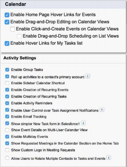 - Les options d'interaction des utilisateurs pour les calendriers sont définies dans la