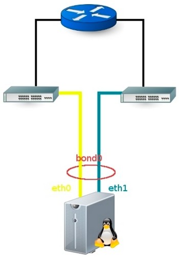 ATTENTION : ce mode de fonctionnement nécessite le chargement d’un module noyau particulier : le module bonding. De plus, il faut deux interfaces actives pour pouvoir réaliser la pseudo-interface bond0 schématisée sur la capture ci-dessus. Il faut donc déclarer trois fichiers ifcfg* :