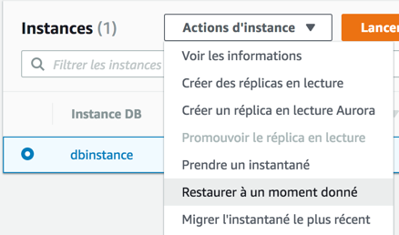 A noter : la restauration du serveur RDS aura pour effet de créer un nouveau serveur.