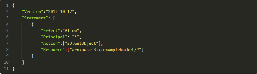 La policy ci-dessus autorise la lecture de fichiers par tout le monde dans le bucket. Elle rend donc le bucket public.