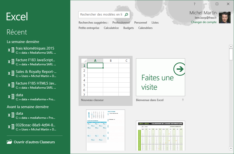 - 4 . Créer un nouveau classeur basé sur un modèle en cliquant sur l'une des icônes