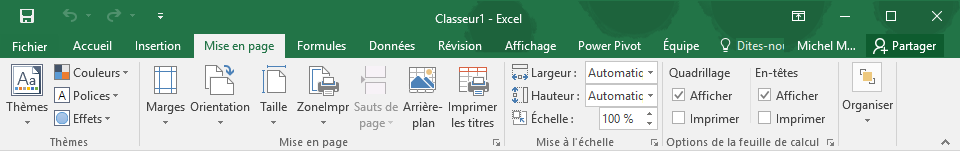 L'onglet Mise en page contient tous les contrôles nécessaires pour mettre en forme vos feuilles de calcul.