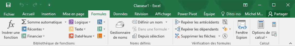 L'onglet Formules donne accès à tout ce dont vous avez besoin pour créer des formules :