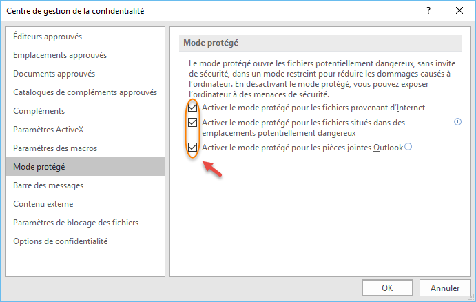 Le mode protégé est une fonctionnalité de sécurité utile lorsque vous manipulez des classeurs téléchargés sur Internet ou reçus dans des messages e-mail.