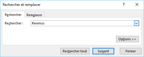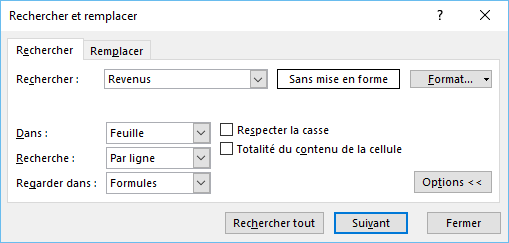 Entrez la valeur, la formule ou le texte recherché dans la zone Rechercher.