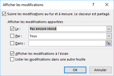 - 3. Sélectionnez le type des modifications que vous voulez suivre : les modifications qui