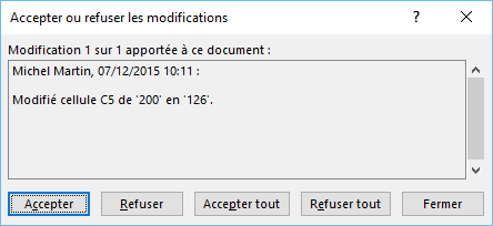 sélectionnez Accepter ou refuser les modifications dans le menu.