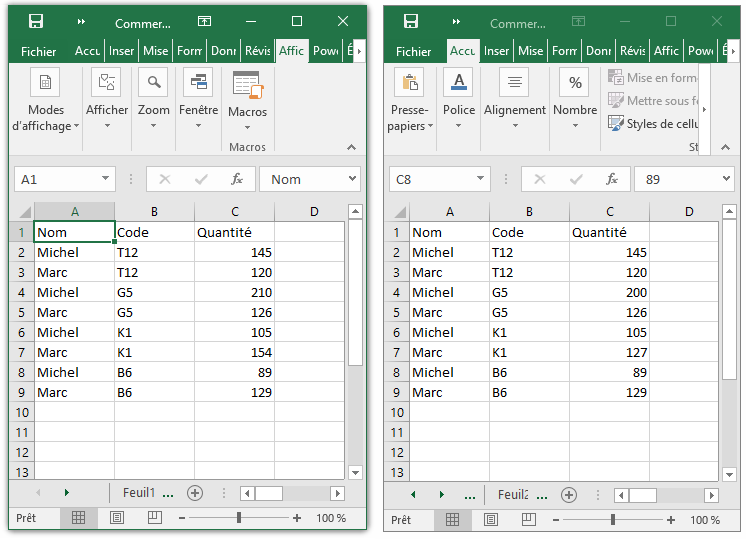 - 1. Ouvrez les deux classeurs que vous voulez comparer.