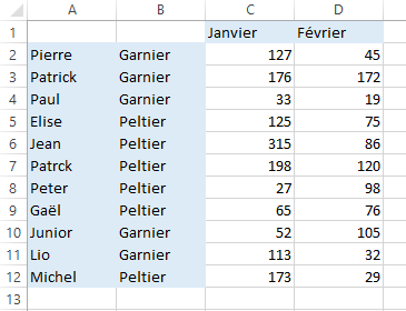A titre d'exemple, nous allons trier les données par nom, puis par prénom dans la feuille suivante :