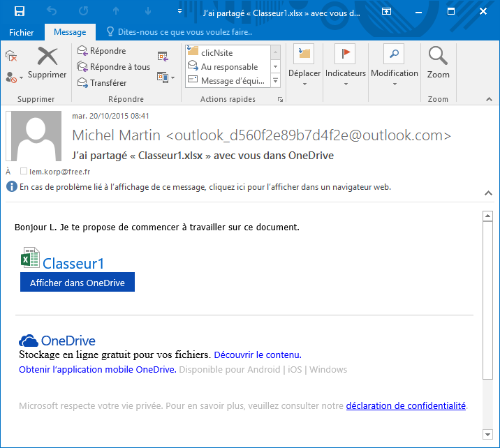 Quelle que soit la technique choisie, votre correspondant reçoit quelques instants plus tard un message qui l’invite à accéder au document partagé :