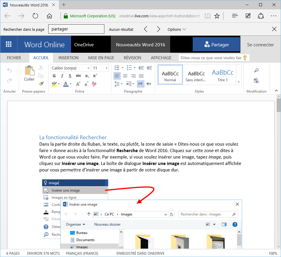Une fois votre document enregistré sur OneDrive, le volet Partager change d’allure :