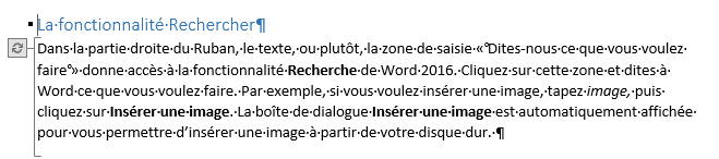 Lorsque le document est modifié par votre collègue, une marque apparaît dans votre version du document pour signaler qu’une modification a été effectuée :