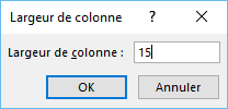 Sélectionnez l'onglet Accueil dans le ruban, cliquez sur l'icône Format dans le groupe Cellules et choisissez Largeur de colonne dans le menu. Entrez une largeur en points et cliquez sur OK pour valider.