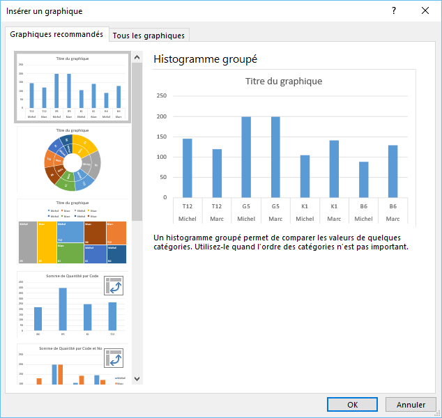 La fonctionnalité Graphiques recommandés permet de créer très simplement des graphiques adaptés à vos données.
