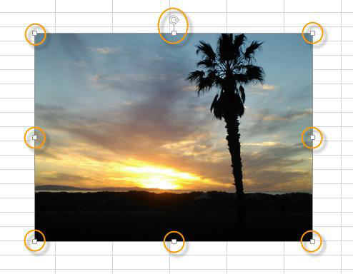 Cliquez sur l'image pour la sélectionner. Huit poignées de redimensionnement entourent l'image. Pointez-cliquez-glissez l'une d'entre elles pour obtenir le redimensionnement souhaité.