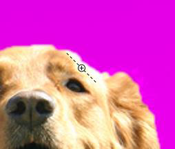 Tracez un segment de droite dans la zone à conserver. Les pixels avoisinants de couleur proche sont automatiquement ajoutés. Les éléments ajoutés sont repérés par un signe + .