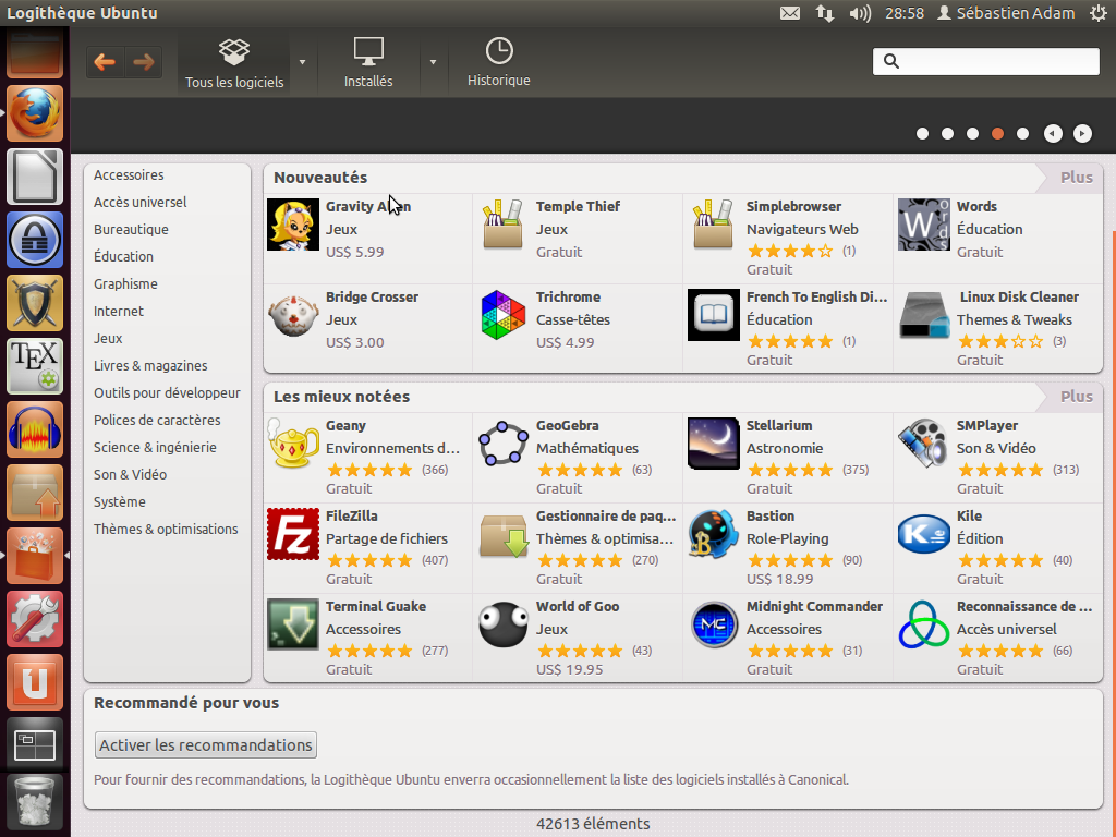 Voici une capture d'écran de la logithèque de Ubuntu 12.04.
