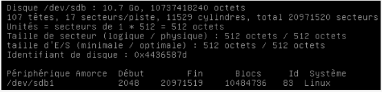 Il faut donc créer une partition sur ce disque en exécutant la commande ci-dessous . Cette partition sera alors formatée pour pouvoir être intégrée dans une structure LVM :