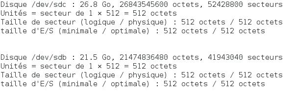 Ainsi, lors du redémarrage suivant, on va pouvoir détecter les deux nouvelles partitions grâce à la commande fdisk –l :