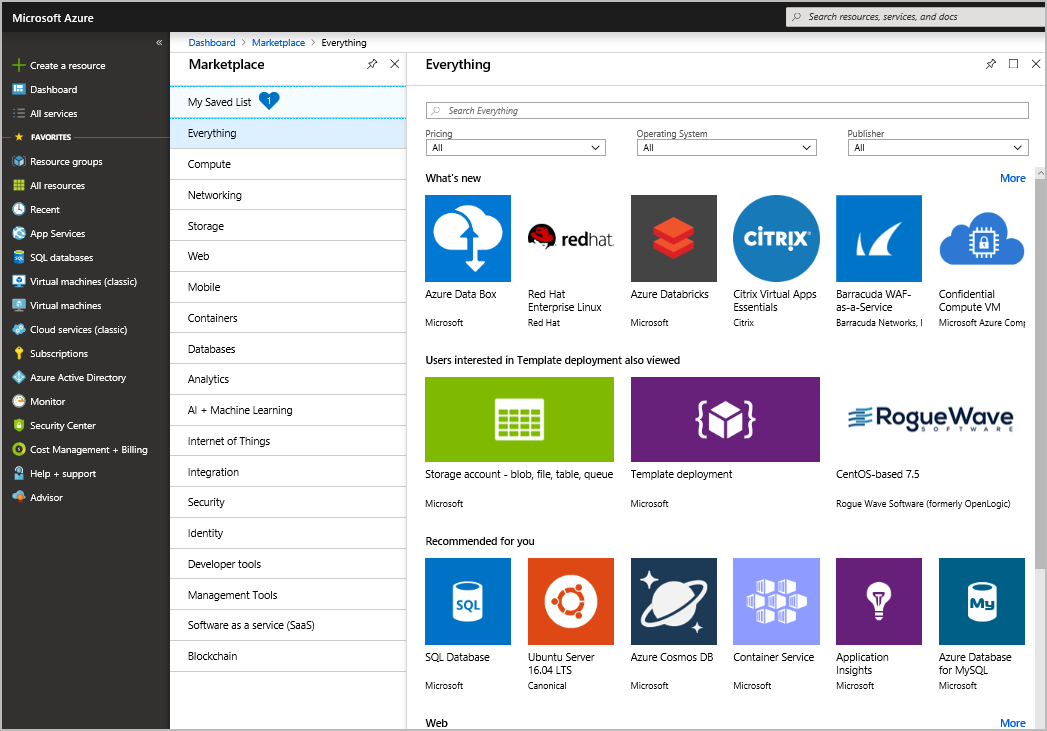 Le catalogue de solutions couvre plusieurs catégories sectorielles, telles que les plateformes de conteneurs open source, les images de machines virtuelles, les bases de données, les logiciels de création et de déploiement d’applications, les outils de développement, la détection des menaces et la blockchain. Avec la Place de marché Azure, vous pouvez provisionner des solutions de bout en bout avec rapidité et fiabilité, en les hébergeant dans votre propre environnement Azure. Au moment de la rédaction du présent document, il existait plus de 8 000 références.