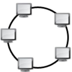 On dit d’un réseau que sa topologie est en anneau, lorsque toutes les stations, ou les équipements, sont connectés en chaine les uns aux autres par une liaison bipoint de la dernière à la première. Chaque poste jour le rôle de station intermédiaire. Toute trame émise depuis une station est réémise vers la suivante. La défaillance d’un hôte rompt la chaîne.