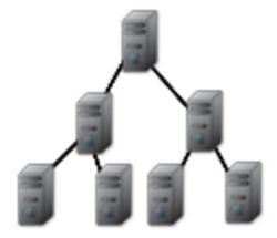 On parle aussi de réseau hiérarchique, car l’architecture est divisée en niveaux. Le sommet représente la racine ou le sommet et est connecté à plusieurs nœuds du niveau inférieur. Ces nœuds peuvent également être connectés à un ou plusieurs nœuds du niveau inférieur… Le tout forme un arbre. Là encore, si le père des équipements (le sommet de l’arbre), vient à défaillir, cela interdit toute communication avec ses subordonnés.