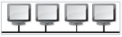 Le câblage ici s’effectue via une liaison unique des unités. Cela représente un faible coût de déploiement et la défaillance d’un nœud, n’empêche pas les autres de fonctionner. Les équipements peuvent être reliés de façon passive par dérivation électrique ou optique. Le point faible, dans ce cas, est le support (ou média) de transfert. Lorsque celui-ci tombe en panne, c’est tout le réseau qui s’arrête.