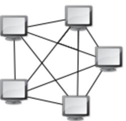 Cela correspond à plusieurs liaisons point à point où chaque unité est reliée à N-1 point permettant ainsi de la mettre en relation avec l’ensemble des autres équipements. L’inconvénient de cette architecture est le nombre de liaisons nécessaires qui croient lorsque le nombre de points augmente : pour N terminaux, il faut N x (N-1) / 2 liaisons. Ce genre de topologie se rencontre dans les grands réseaux de distribution, comme Internet.