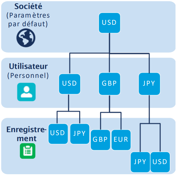 - Les nouveaux enregistrements héritent de la devise personnelle d'un utilisateur, qui