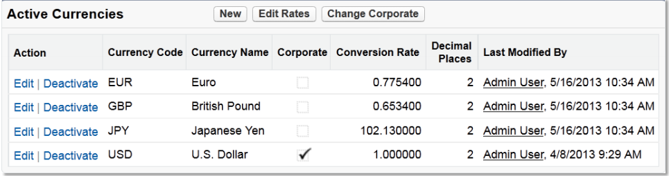 Par défaut, les organisations Salesforce sont à devise unique. Ceci signifie que :