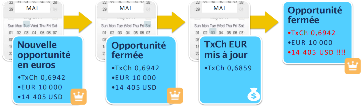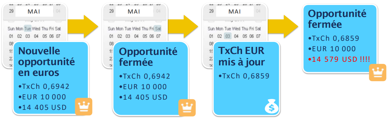 - Les opportunités utilisent le taux qui correspond à la date de clôture.