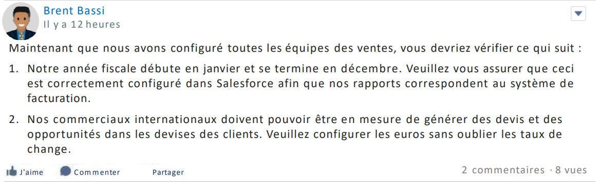 - Mettre en place Chatter afin d'aider les utilisateurs à collaborer sur des contrats et