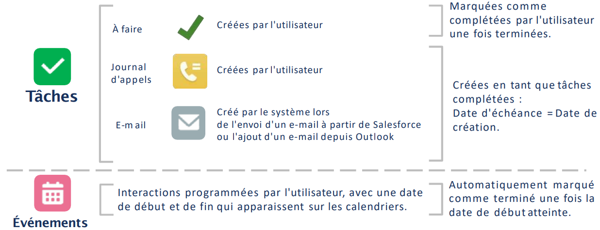 Les tâches correspondent à votre liste de tâches. Les événements font référence à ce qui