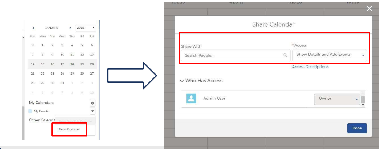 - Les options d'interaction des utilisateurs pour les calendriers sont définies dans la