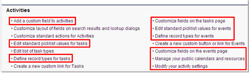 - Des champs personnalisés peuvent être créés pour toutes les activités et intégrer des