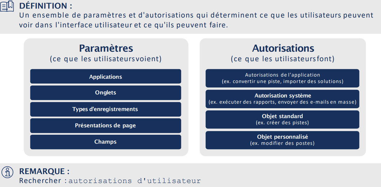 Dans la mesure où vous ne pouvez pas modifier les autorisations sur un profil standard, nous vous conseillons de créer systématiquement des profils personnalisés pour vos utilisateurs. Pour ce faire, clonez et modifiez un profil existant.