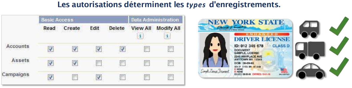 N'oubliez pas, les autorisations relatives aux objets ne déterminent que les types d'enregistrements que les utilisateurs peuvent afficher, créer, modifier ou supprimer, et pas les enregistrements eux-mêmes.