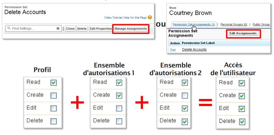 Utilisez les ensembles d'autorisations pour accorder des permissions supplémentaires à des utilisateurs spécifiques,en plus de leurs autorisations de profil existantes, sans avoir à modifier leurs profils existants, créez de nouveaux profils ou accordez un profil administrateur là où ce n'est pas nécessaire.