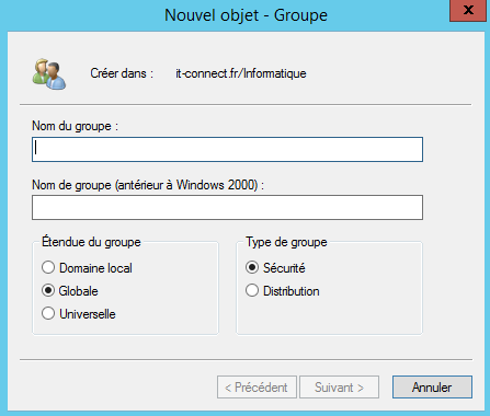 Comme il n’y a pas de notion de sécurité, ce type de groupe ne dispose pas d’identifiant de sécurité « SID ».